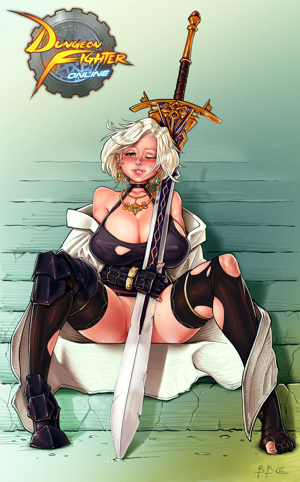 1girlsarmorassblonde hairblushbottomlessbreastscleavageconvenient censorshipcovering pussyfeetfemale onlyFlag for Deletionhuge breastslarge asslarge breastsmajestyno brapubic hairrestingshort hairsittingslayerspread legssweatswordteasetoesvideo gameweaponwide hipswink