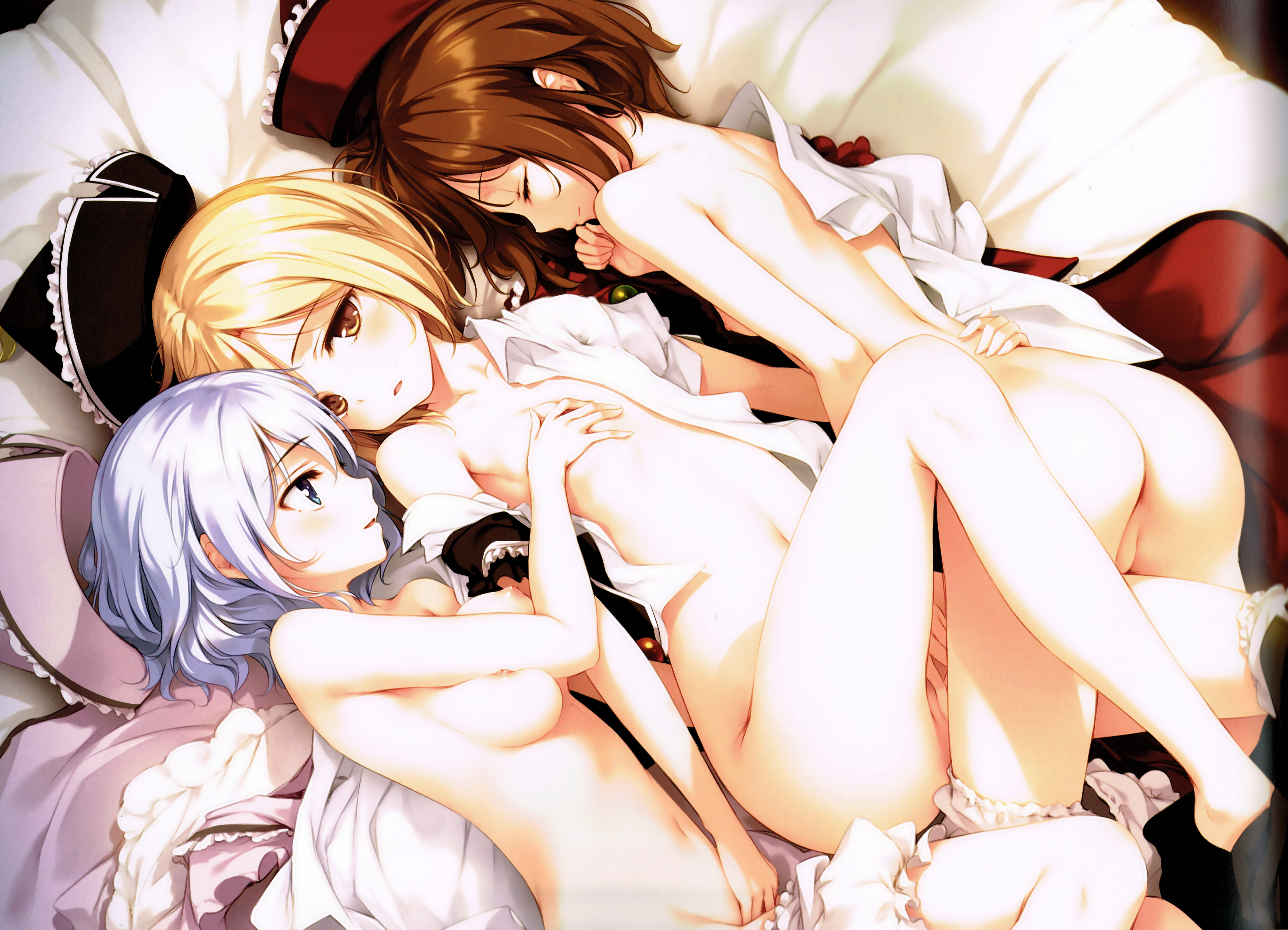 3girlsarm around waistassbare legsbarefootblonde hairbloomersbloomers pullblue eyesbottomlessbreast grabbreastsbrown hairclosed eyescrotchdress shirtfemalefingeringFlag for Deletionhathat removedheadwear removedincestlegslight smilelong legslyingmultiple girlsnavelnipplesnudeoff shoulderon backon sideopen clothesopen shirtparted lipsshirtshort hairsiblingssideboobsilver hairsisterssleepingsmall breastsunderwearyellow eyesyuri