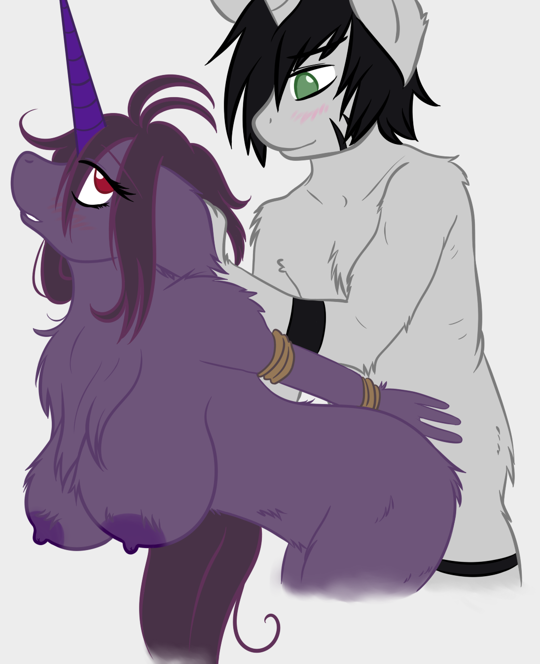 anthroblack hairblushbondageboundchest tuftequineFlag for Deletiongreen eyeshairhair pullhornhorseponypurple bodypurple hairred eyesropesexunicorn
