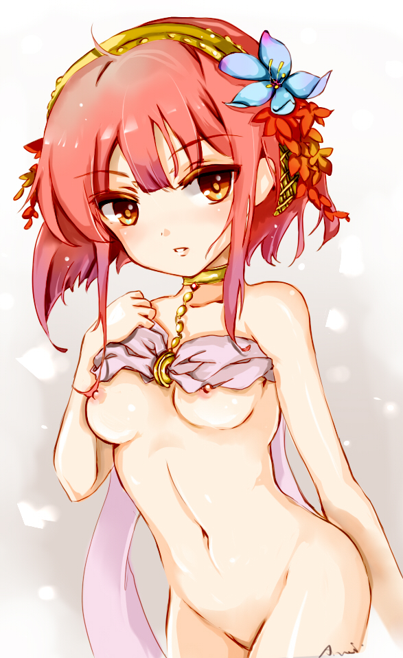 1girlsblushbreastscollarfemalefemale onlyFlag for Deletionhairbandlooking at viewernipplesorange eyespussyred hairshort hairsolouncensored