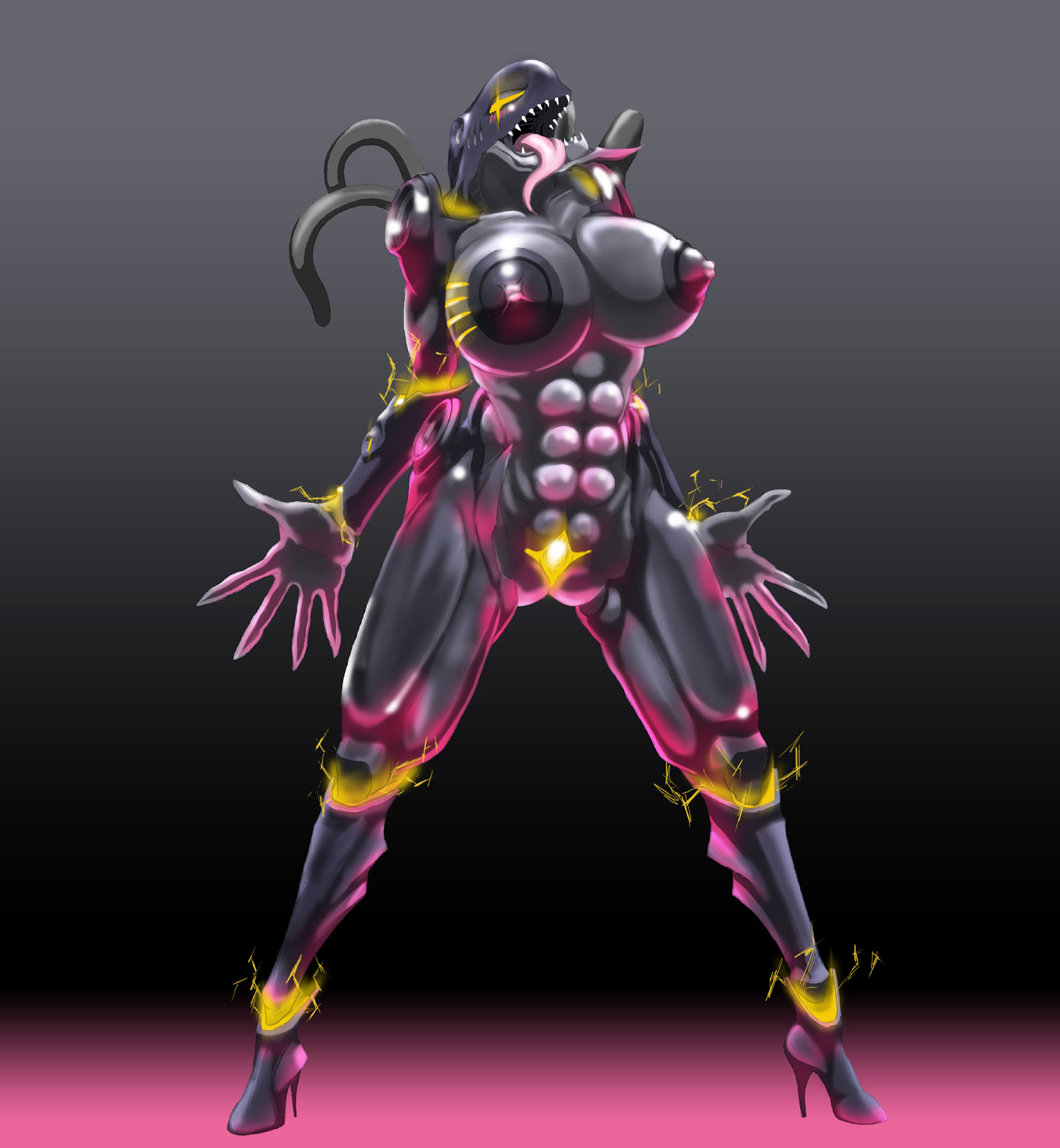 absanthroanthrofiedbig breastsbiomechanicalblack bodybreastsfemaleFlag for Deletionglowingglowing eyesgradient backgroundhigh heelslong tonguenipplesopen mouthphyrexianpussysharp teethsoloteethtonguetongue outvane666yellow eyes