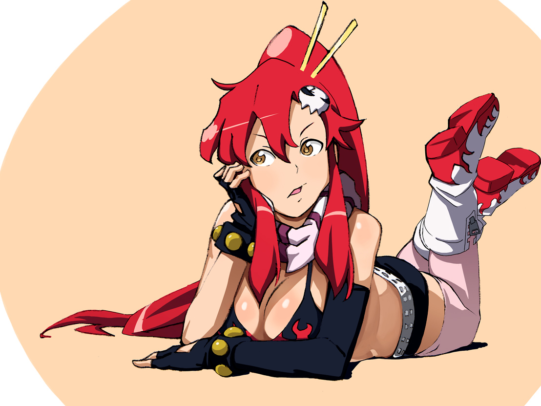 arm supportbikini topbootsbreastschin restcleavagefemalefingerless glovesFlag for Deletiongloveshair ornamentlegs uplong hairlyingon stomachopen mouthpink legwearponytailred hairscarfshort shortsshortsskull hair ornamentsolothighhighstied hairvery long hairyellow eyes