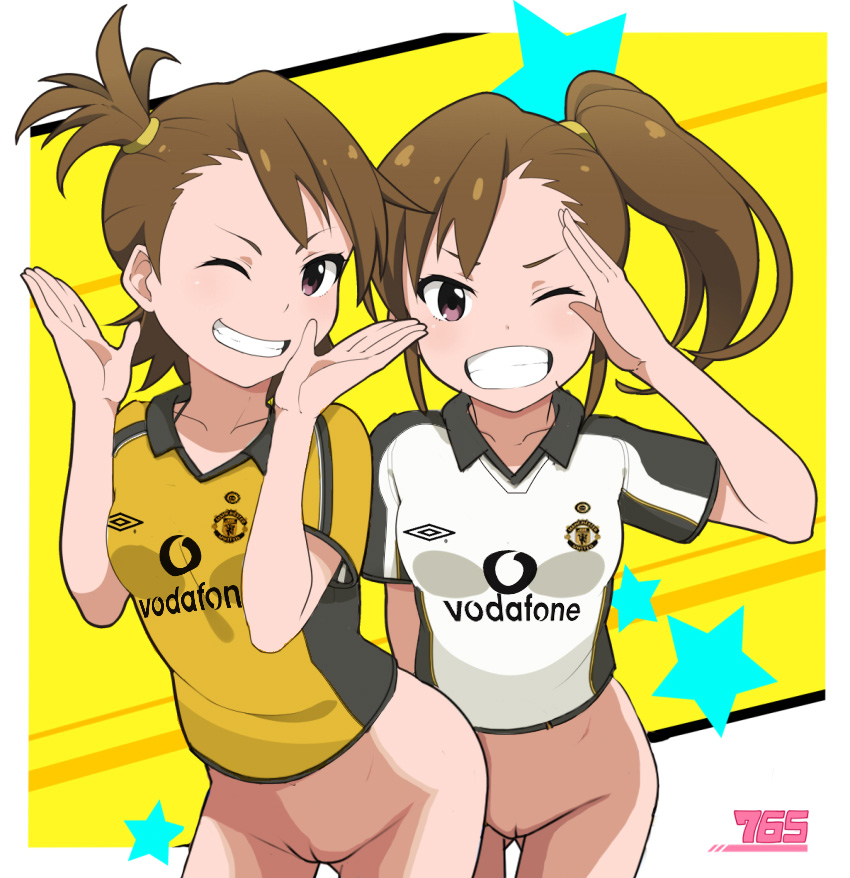 2girlsbottomlessbrown hairclothingfemaleFlag for Deletionhair ornamentmultiple girlsshirtshort hairsistersoccertwins