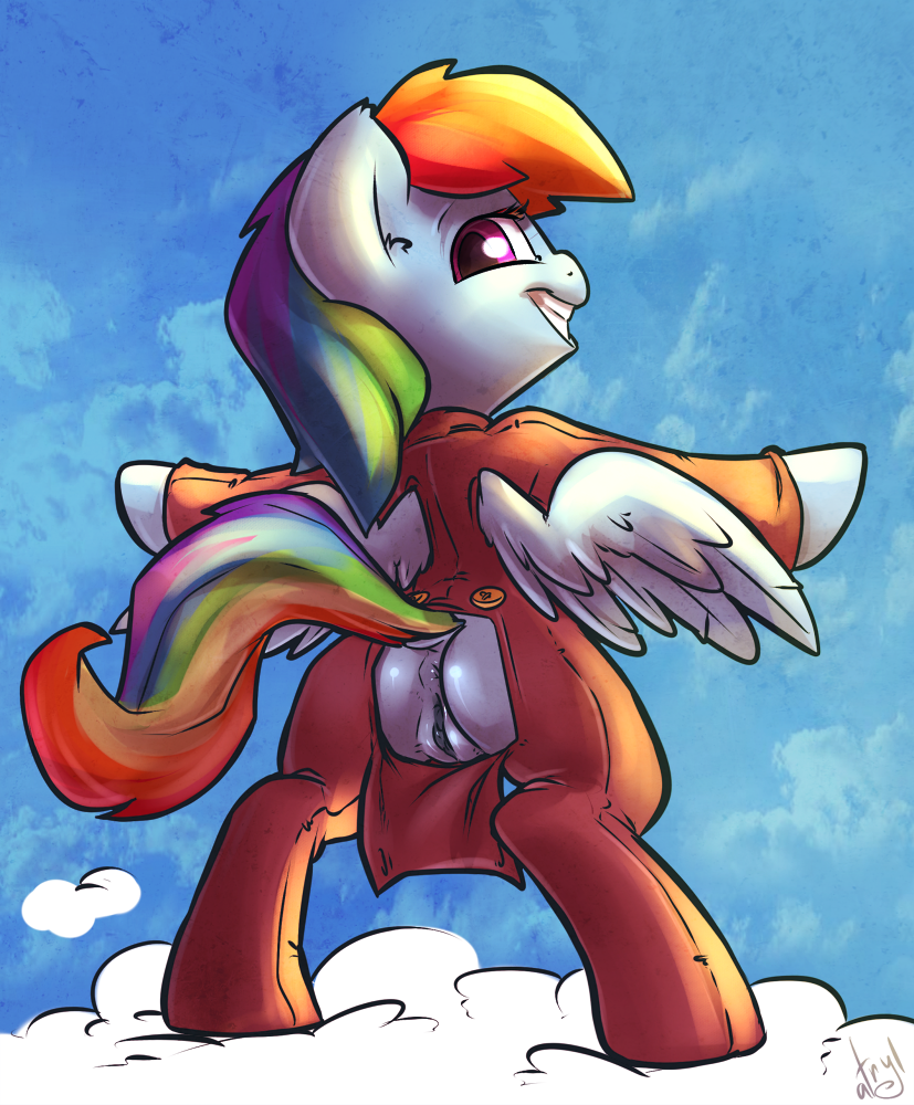 anusblue furclothescloudequinefemaleFlag for Deletiongrinhairhorselooking at viewerlooking backmulticolored hairpegasusponypurple eyespussyrainbow hairsolowings