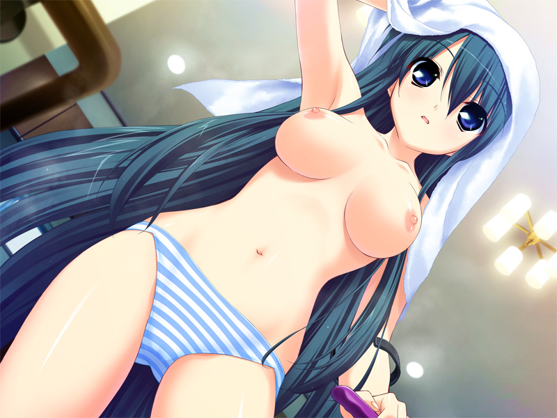 armpitsblurryblushbreastscollarbonecrutchdepth of fielddutch anglefemaleFlag for Deletionfrom belowgreen hairlong hairnavelnipplespantiespurple eyessribbonribbonssolostandingstripedstriped pantiestoplesstowelunderwearunderwear onlyvery long hair