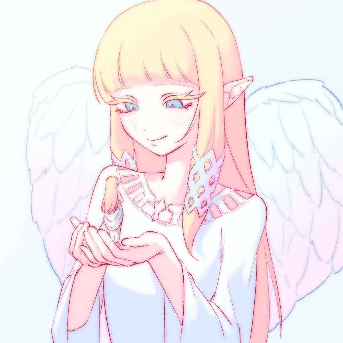00bbb lz2girlsblue eyesblunt bangsbreastsclosed mouthcolored eyelashesdressdual personafeathered wingshair ribbonin palmlight blushlong hairmedium breastsmultiple girlspointy earsribbonsidelockssmilesoloupper bodywhite dresswhite ribbonwhite wingswide sleeveswings
