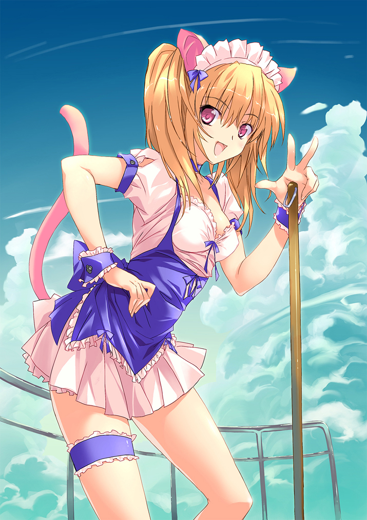 :d1girlanimal earsblonde hairbroomcat earscat tailchokerclouddayfemale focusfrilled thigh strapmaidmaid headdressopen mouthpink eyesskirtsmilesolotailthigh straptwintailsvwrist cuffs