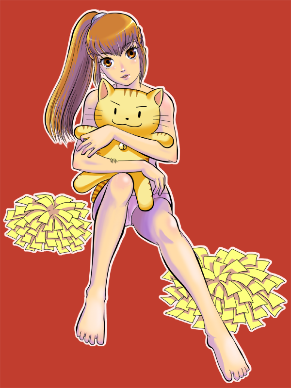 1girlbarefootfemale focuslooking at viewerpantiespom pom (cheerleading)ponytailsimple backgroundsolounderwear