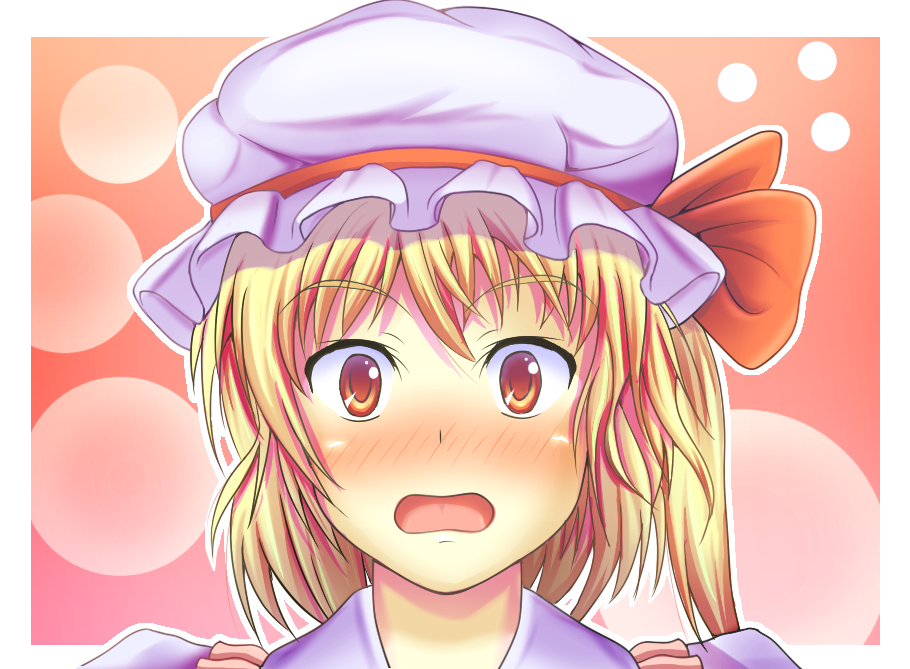1girlblonde hairblushclose-upfemale focushatopen mouthpovred eyesshort hairside ponytailsolosurprised