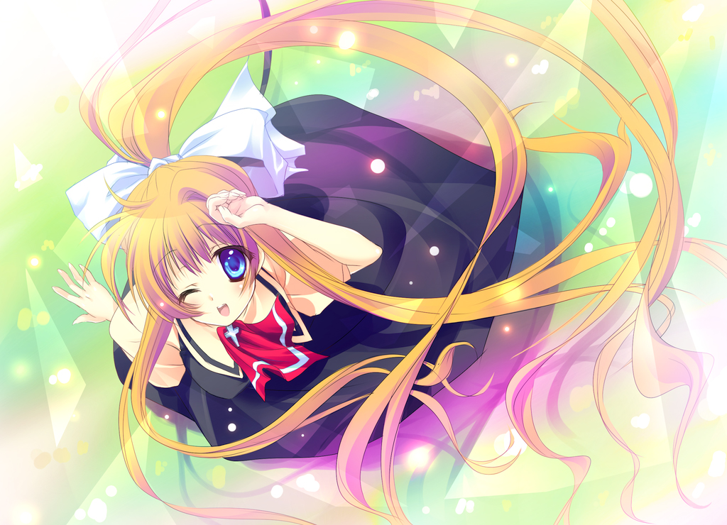 00sblonde hairblue eyeslong hairlooking upone eye closedponytailschool uniformvery long hairwink