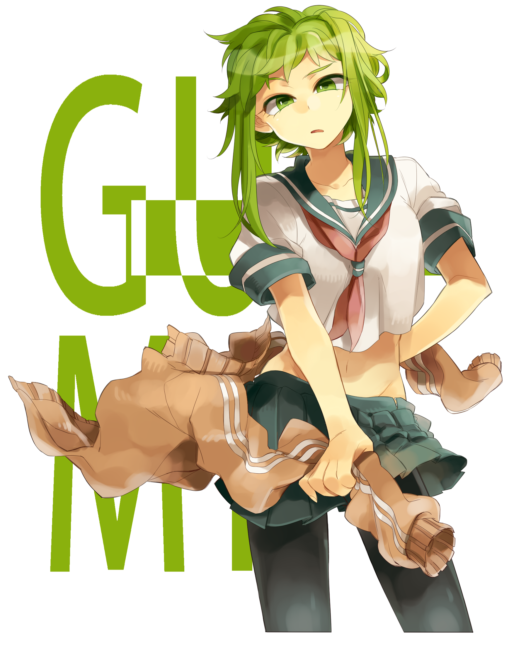 1girlblack pantyhoseblue sailor collarcharacter namecrop topgreen eyesgreen hairholdingholding jacketholding unworn clothesjacketlooking at viewermidriffminiskirtnavelneckerchiefpantyhoseparted lipspleated skirtred neckerchiefsailor collarschool uniformserafukushort hair with long locksshort sleevessimple backgroundskirtsolounworn jacket