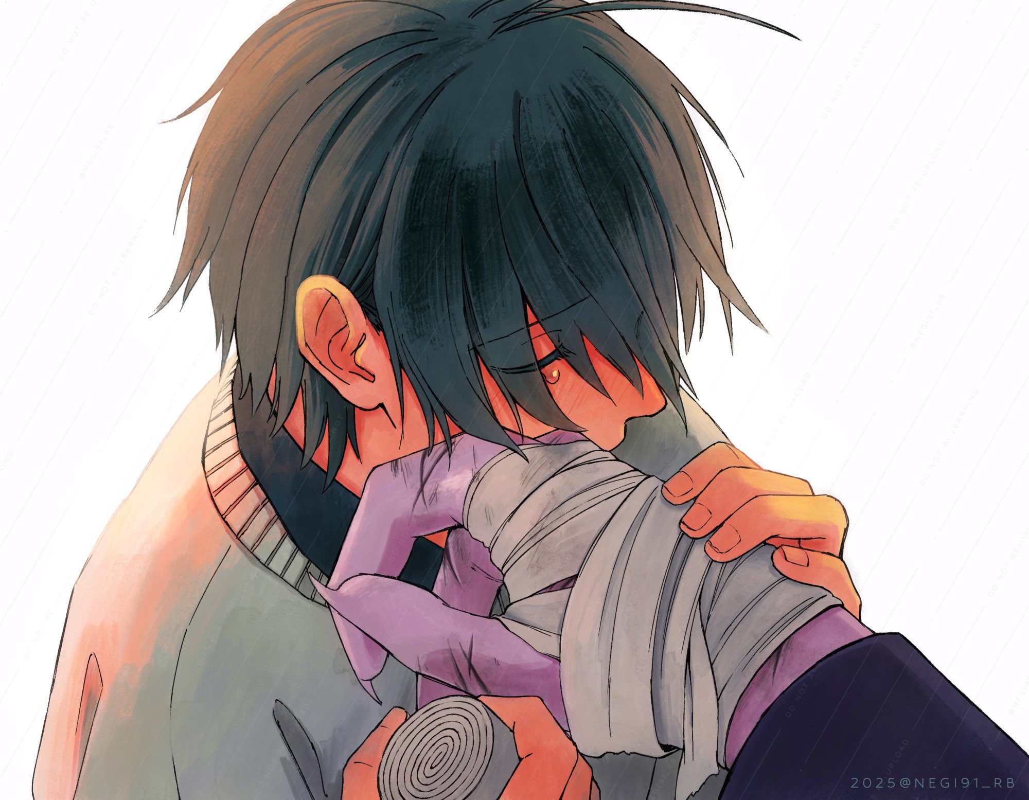 1girl1otherahogebandaged handbandagesbrown hairclosed eyescolored skincovered mouthcryingfingernailsgrey sweaterhand on another's handholding bandagesout of frameportraitpurple skirtrainsharp fingernailsshort hairsimple backgroundskirtsweatertearstwitter usernamewhite backgroundyellow skin