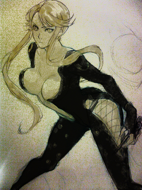 00s1girlbare hipsblonde hairbodysuitbreastscenter openingcleavagefemale focuslarge breastslong hairmonochromeshort hair with long lockssolotwintails