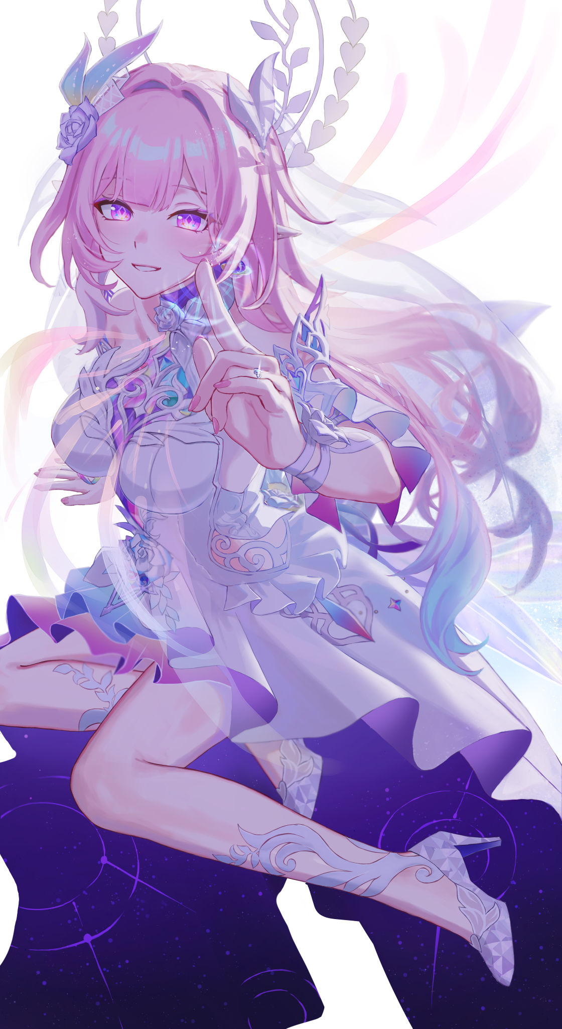 hojo karen, idolmaster, idolmaster cinderella girls, idolmaster cinderella girls starlight stage, official art, 1girl, armlet, crossed legs, dress, english text, fingerless gloves, gloves, hair ornament, idol clothes, jewelry, nail polish, open mouth, orange hair, solo, tiara, yellow eyes