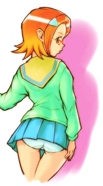 00s1girlassbackfemale focusfrom behindglassesorange hairpantiesprofileschool uniformserafukushort hairskirtsolounderwearupskirt