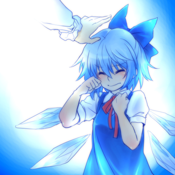 1girlblue hairblue themebowclosed eyesgradient backgroundhair bowhead patheadpatribbonshort hairsolo focustearswings