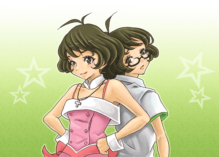 00s2boysantenna hairbrown haircasualcrossdressingcrossdressing (mtf)cute & girly (idolmaster)glassesgradient backgroundmale focusmultiple boysmultiple viewstrap