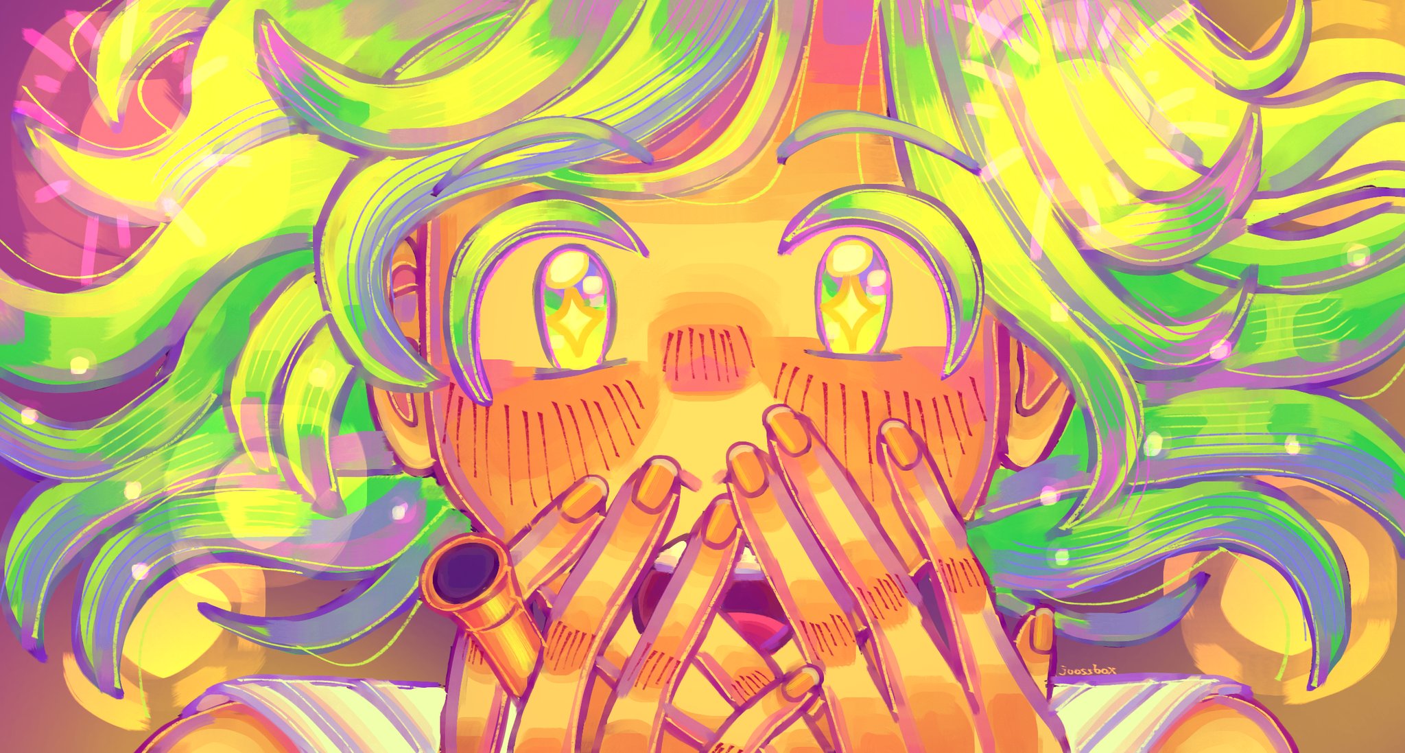 1boy1girlblushfingernailsgreen eyesgreen hairjoossboxopen mouthshort hairsoloteethupper teeth only