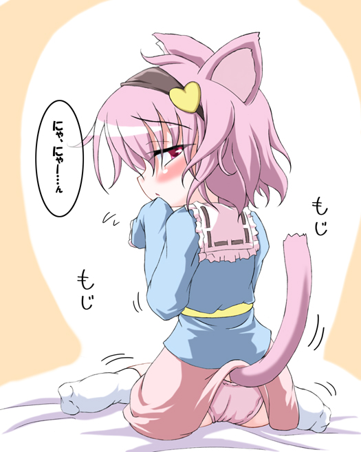 1girlanimal earsassblushcat earscat girlcat tailclothes liftfemale focushairbandheartkneelinglifted by taillolilooking backpantiespink pantiespink tailred eyesshort hairskirtskirt liftsockssolotailunderwearwhite socks