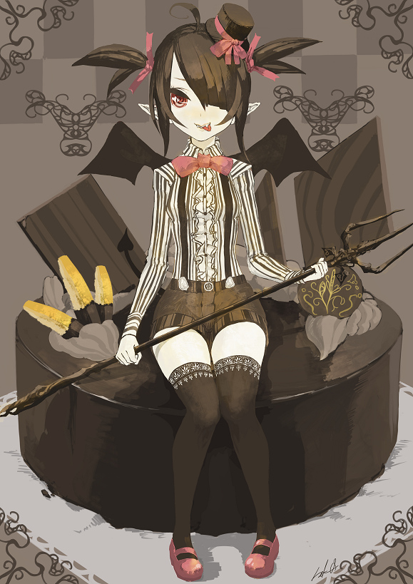 cait sith (final fantasy), lulu (ff10), moogle, sabotender, final fantasy, final fantasy x, lowres, 00s, 1girl, bare shoulders, black hair, bow, bowtie, breasts, cactus, cat, cleavage, company name, crown, english text, female focus, hair ornament, jewelry, large breasts, lipstick, makeup, mole, mole under mouth, necklace, purple lips, solo, upper body, watermark, web address