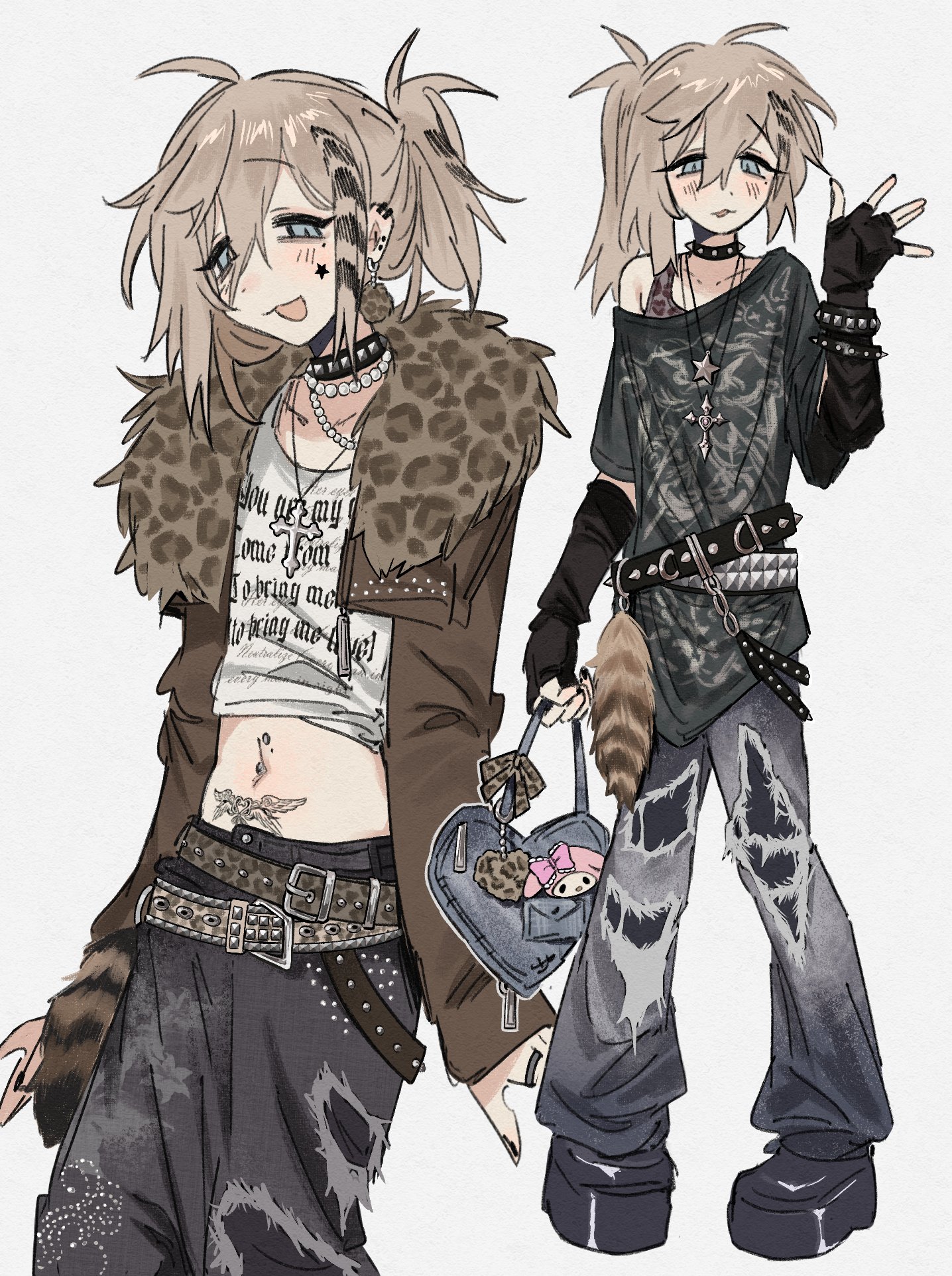 :31boyahogealternate costumeanimal printbagbead necklacebeadsbeltblack beltblack glovesblack nailsbrown hairbrown jacketchokerclothes writingcowboy shotcrop topcrosscross necklacedenimdownturned eyesear piercingfacial markfingerless glovesfull bodyfur trimfur-trimmed jacketglovesgrey eyeshair between eyesheart-shaped bagholdingholding bagjacketjeansjewelryleopard printlong hairmolemole under eyemulticolored hairmultiple ringsmultiple viewsnavelnavel piercingnecklaceopen mouthpantspiercingpigeon-toedponytailpubic tattoopunkraccoon tailringshirtside ponytailsimple backgroundsmilespiked chokerspikesstar (symbol)star facial markstreaked hairstudded belttailtattootorn clothestorn jeanstorn pantsvirtual youtuberwavingwhite backgroundwhite shirt