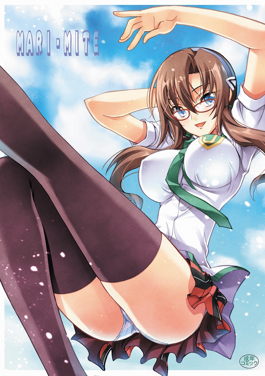 00s1girlassblack thighhighsblue eyesbreastsbrown haircovered erect nipplesfemale focusglassesimpossible clothesimpossible shirtlarge breastslong hairnarrow waistnecktieopen mouthpantiesschool uniformshirtsolostriped clothesstriped pantiesthighhighsunderwear
