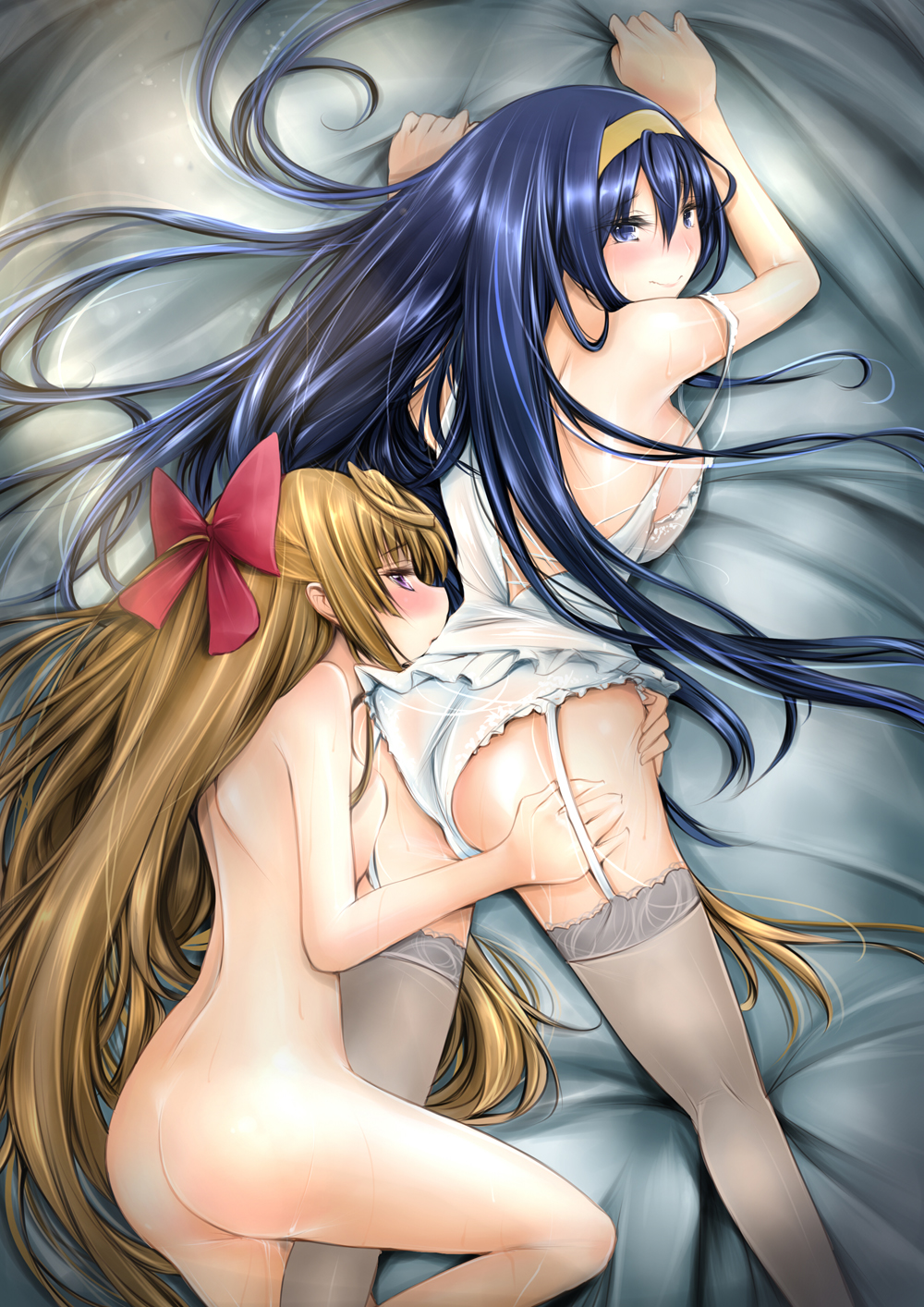 2girlsassbedblonde hairblue eyesblue hairblushbreastsFlag for Deletionhair ornamenthair ribbonkissinglarge breastslingeriemultiple girlsnudepantiespurple eyesribbonthighhighsunderwearwhite pantiesyuri