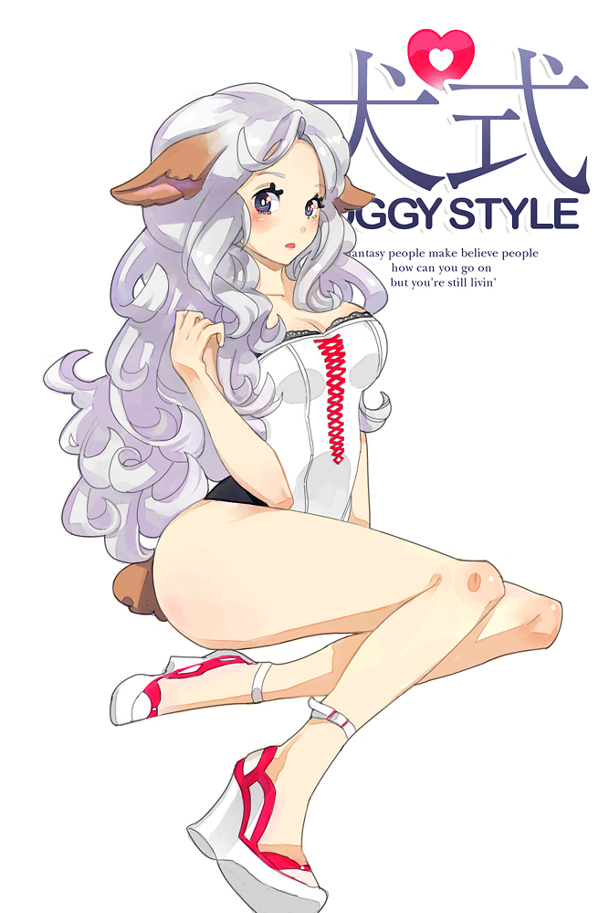 animal earsassblushbreastscorsetcurly hairdog earsdog tailenglish textengrish textespadrilleshigh heelslarge breastslegslong hairranguageshoessittingsolotail