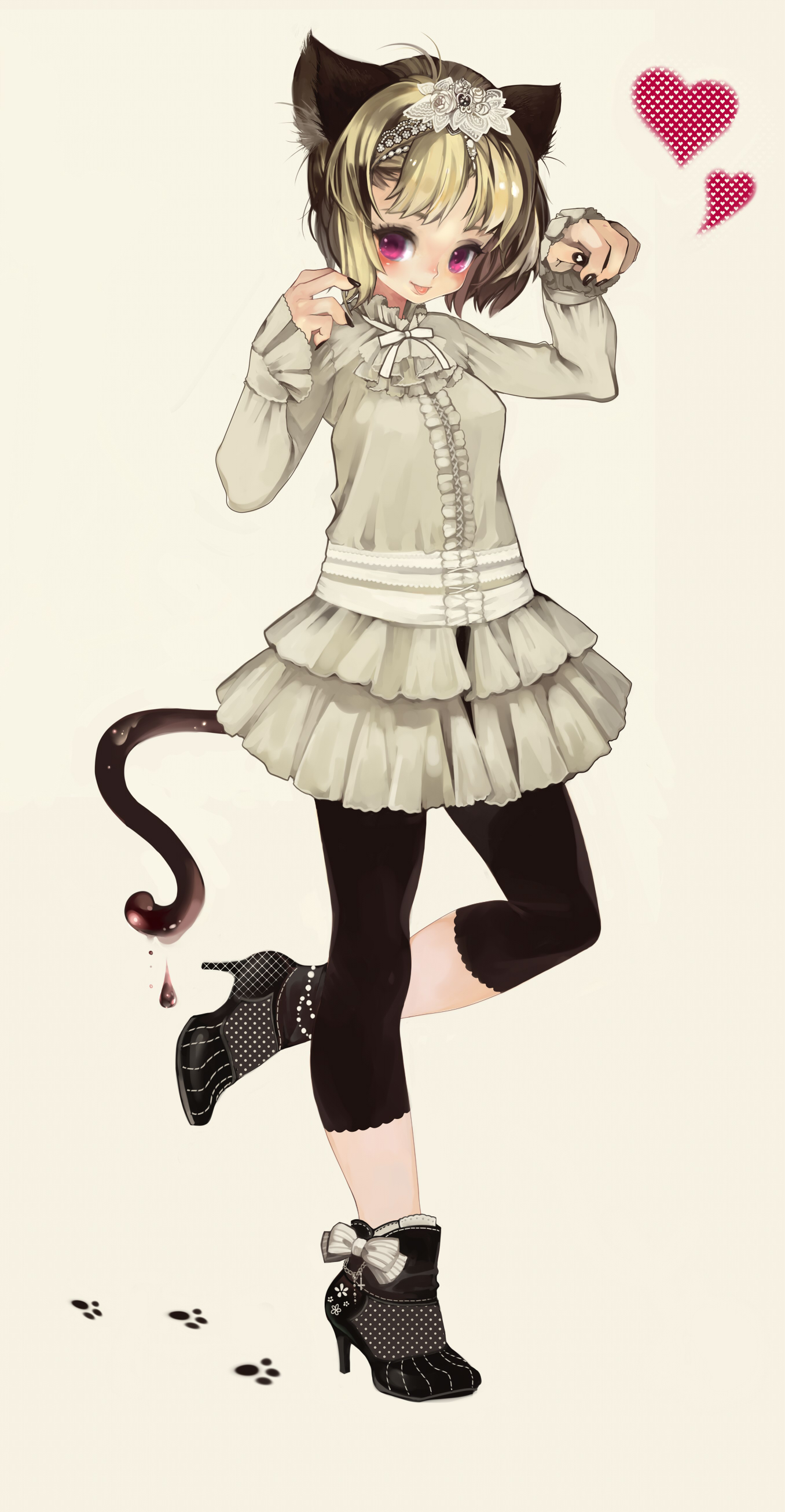 :p1girlanimal earsblack nailsblonde haircat earscat tailfemale focusflowerhair flowerhair ornamenthearthigh heelsnail artnail polishpaw poseshoesshort hairsolotailtonguetongue out