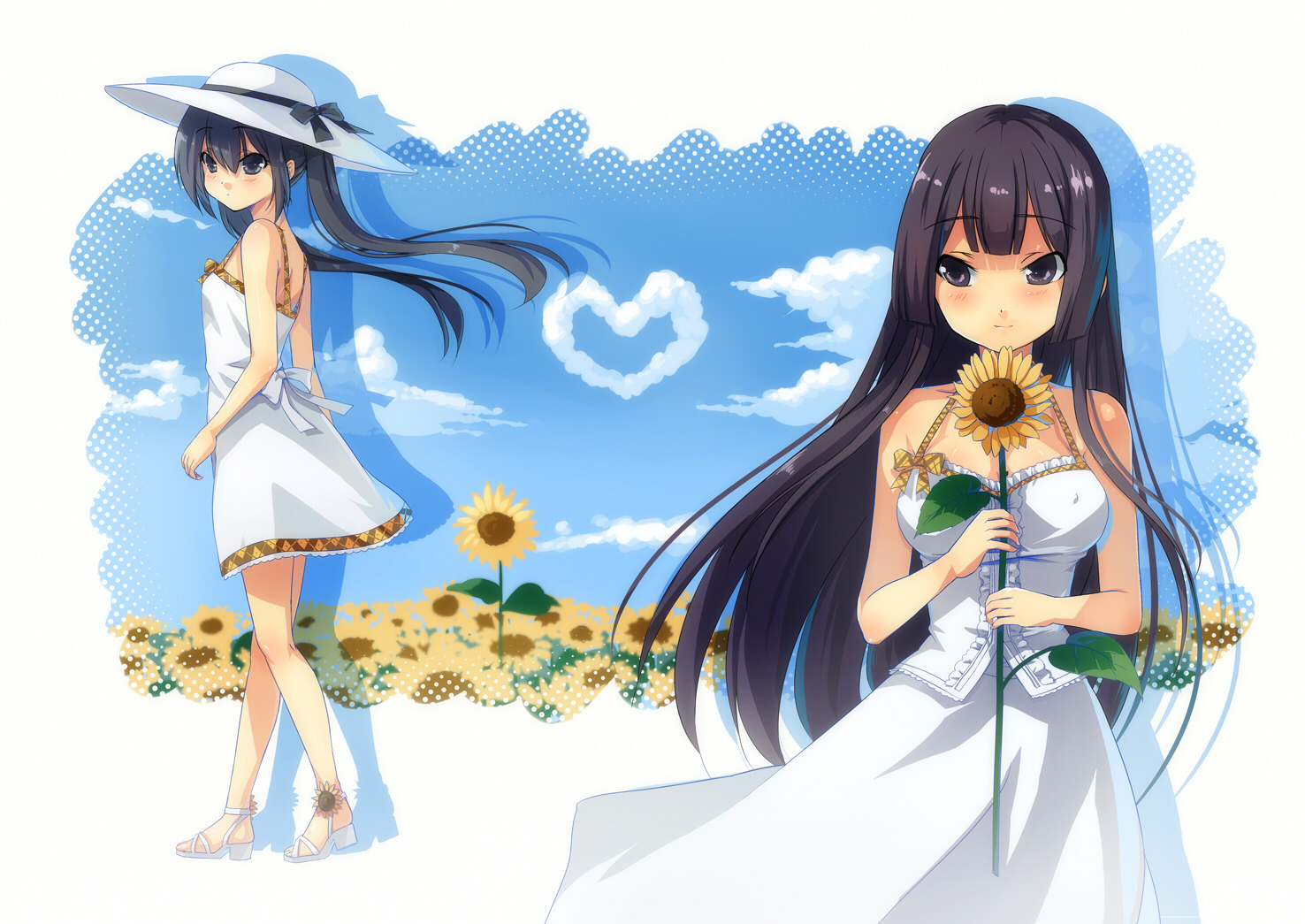 00s2girlsblack eyesblack hairblushbreastscovered erect nipplesdaydressflowerhatheartlong hairmedium breastsmultiple girlssandalsskirtsmall breastssun hatsundresssunflowertwintailswhite dresswhite skirt