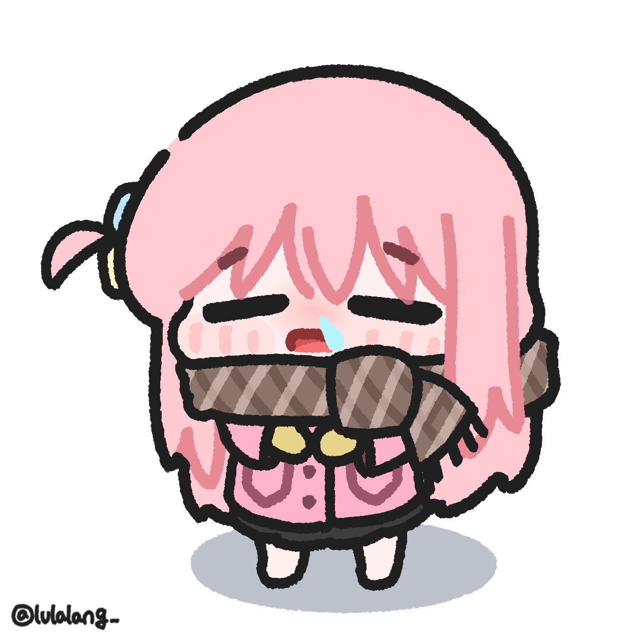 1girlblack skirtbrown scarfchibichibi onlyclosed eyescoatcoldfacing viewerfull bodylong hairmittensone side upopen mouthpink coatpink hairrunny nosescarfsicksimple backgroundskirtsnotsolostandingwhite backgroundyellow mittens