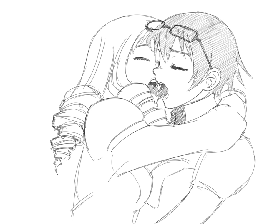 10s2girlsclosed eyescoupledrill haireyewear on headfemale focusfrench kissglassesgreyscalehugkisslong hairmonochromemultiple girlspuffy sleevessalivashort hairsimple backgroundsketchtonguewhite backgroundyuri