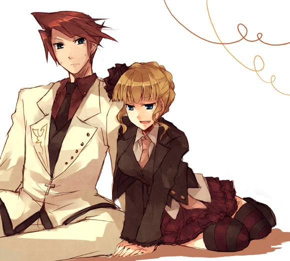 00s1boy1girlblonde hairblue eyesflowerformal clothesnecktiepink necktiered hairshort hairsmilethighhighs