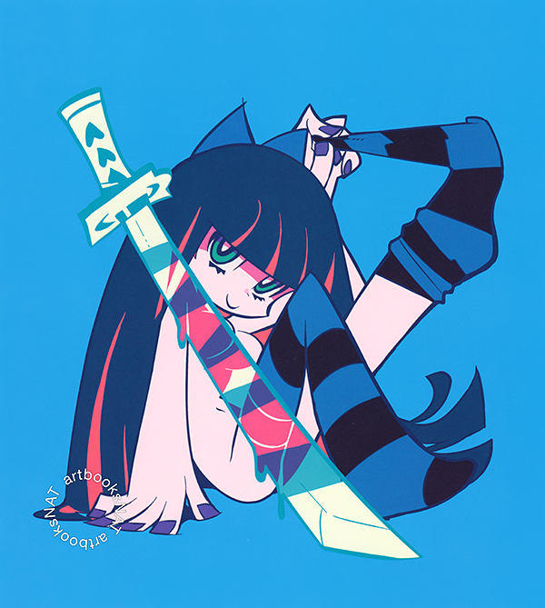 blu-ray coverblue hairbowbreastsconvenient censoringcover imagefemaleFlag for Deletiongreen eyeshairbowlong hairmulticolored hairnail polishpink hairpurple nailssolostripedstriped legwearswordthighhighsthighhighs pulltwo-tone hairweapon