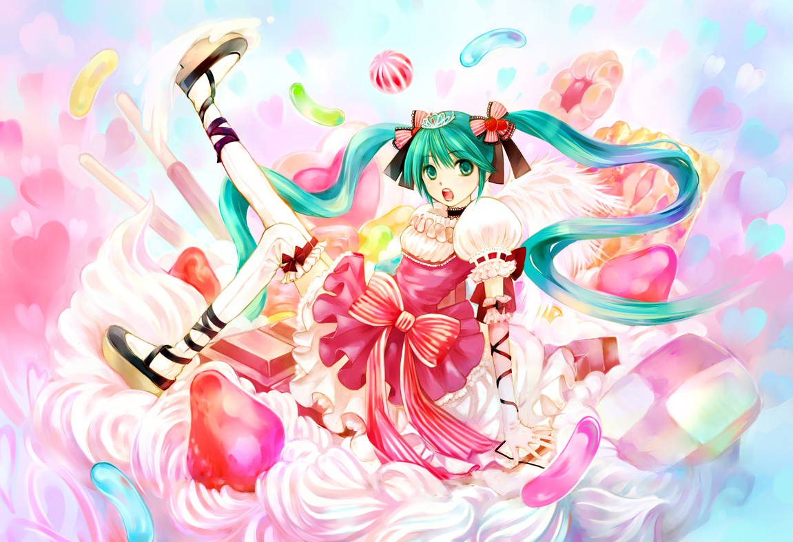 1girlangel wingsaqua eyesaqua haircakecandycheckerboard cookiechocolatecookiecreamcrowndresselbow glovesfemale focusfoodfood-themed clothesfrillsfruitgloveshair ribbonjelly beanlong hairpastryplatform shoespockyribbonshoessolostrawberrythighhighstwintailsvery long hairwings