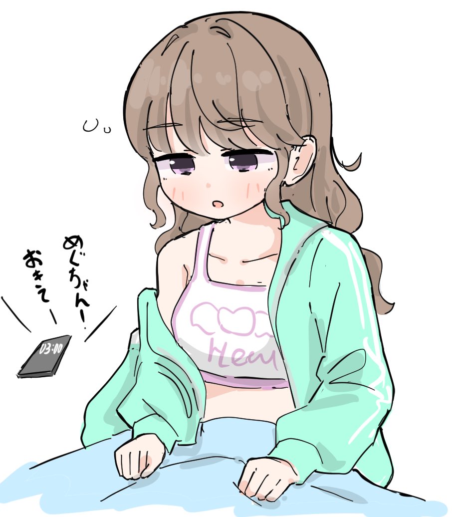 1girlblushbreastsbrown haircellphonecollarbonegreen jackethair downhoodhooded jacketjacketlarge breastslong hairlong sleevesofficial alternate costumeopen clothesopen jacketopen mouthphonepurple eyessingle bare shouldersingle off shouldersittingsleepysmartphonesolosports brasqueanstrack jacketvirtual youtuberwhite sports bra