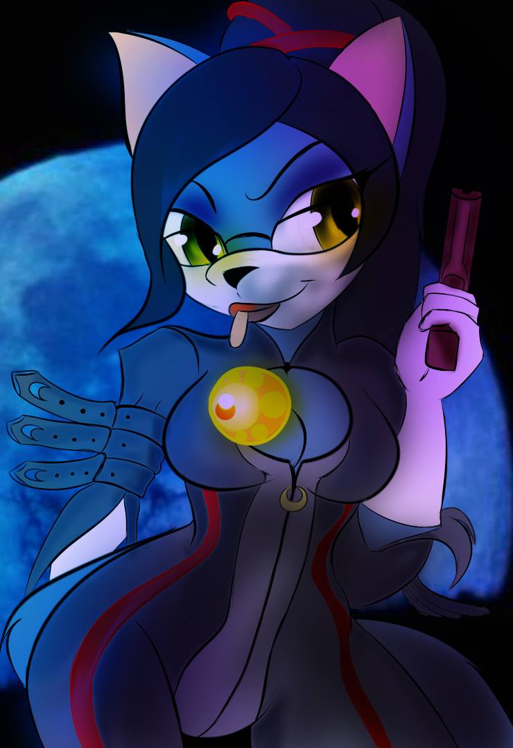 animal earsblack hairbreastscosplayfemaleFlag for Deletionfurryglassesgunlarge breastsmoontailweaponwolfyellow eyes