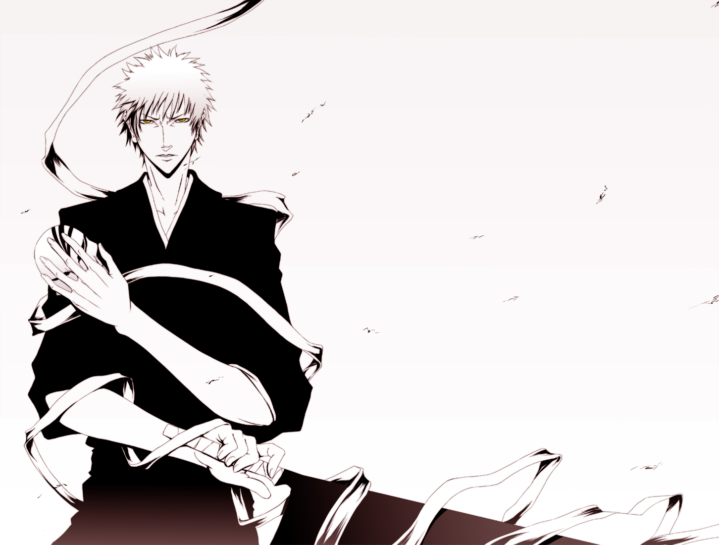 00s1boymale focusmonochromeshikaisimple backgroundskullsolospot colorswordweaponyellow eyeszangetsu (shikai)