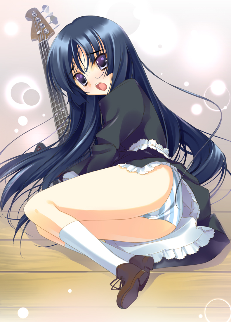 00s1girlassbass guitarblack hairblushdressfemale focusfull bodyhair spread outinstrumentpantiessockssolostriped clothesstriped pantiesunderwear