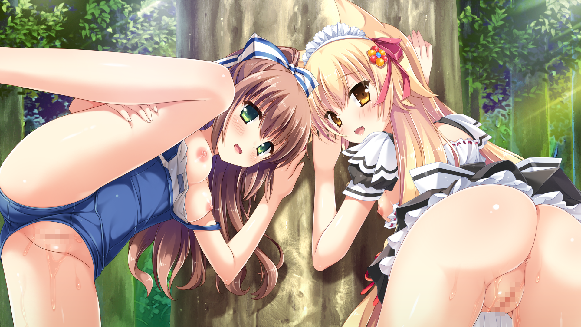 2girlsanimal earsanusassblonde hairbreastsbrown hairfemaleFlag for Deletionhulottelong hairmaidmultiple girlsnipplesno branopanopen clothesopen shirtpussypussy juiceschool swimsuitshindou meikashirtskirt liftswimsuittree