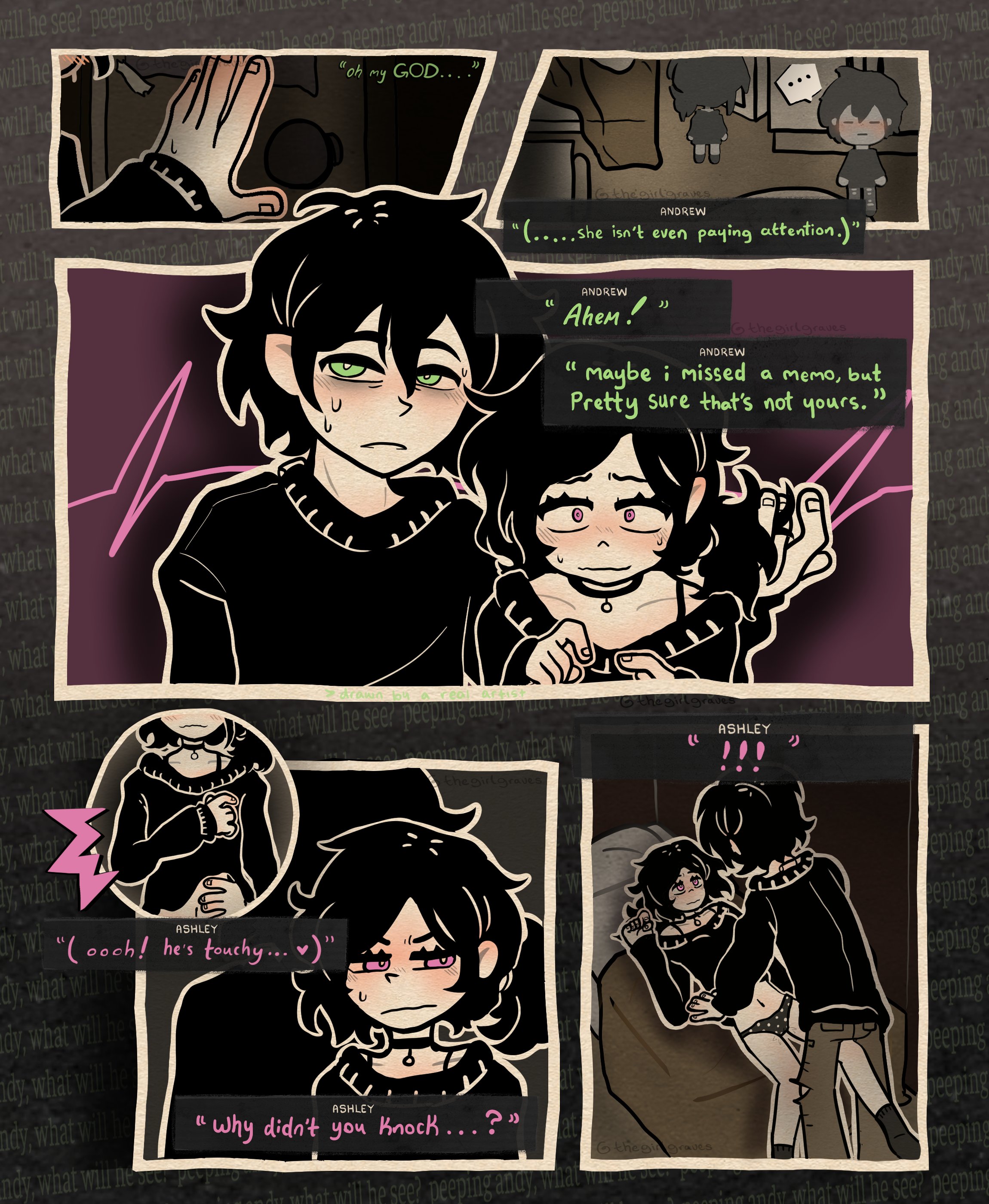 black hairblack shirtblushbottomlessbrother and sisterchokergreen eyespink eyesshirtshort hairsiblingsunderwear