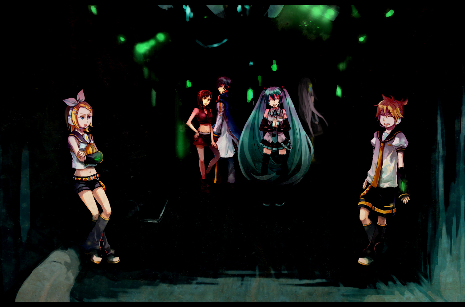 2boys3girlsaqua hairblonde hairblue hairbrown hairdarkdetached sleeveshair ornamenthair ribbonhairclipheadphonesheadsetlong hairmultiple boysmultiple girlsnecktieribbonscarfshort hairshortssiblingsskirtsmilethighhighstwinstwintailsvery long hairzettai ryouiki