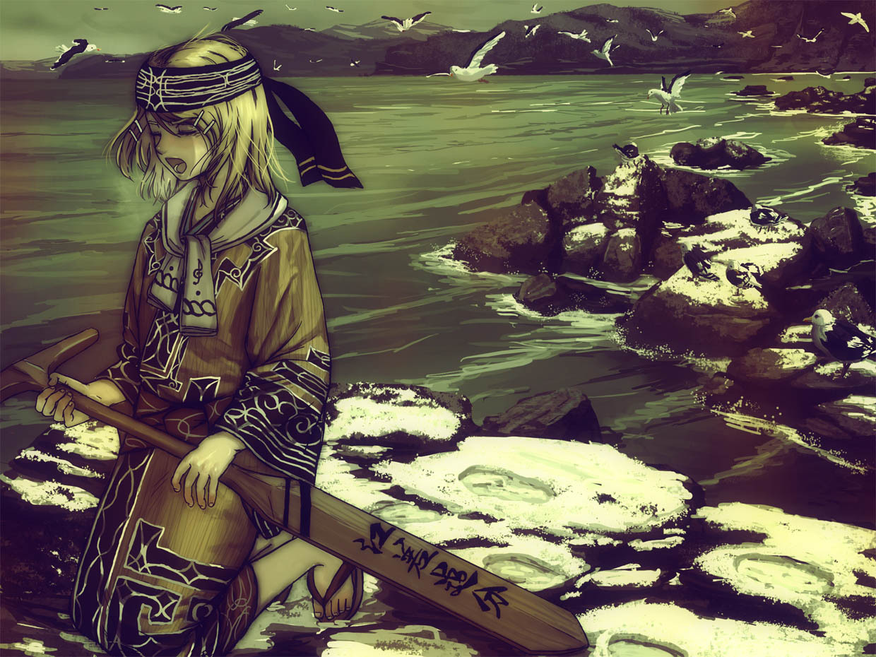 retei, kagamine rin, vocaloid, bad id, bad pixiv id, bare shoulders, blonde hair, detached sleeves, green eyes, ribbon, shorts, smile, solo