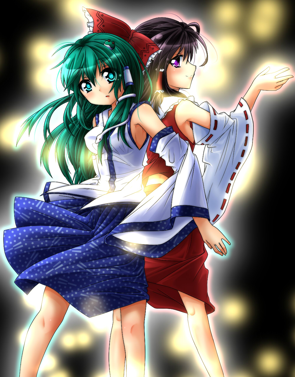 2girlsarmpitsback-to-backdetached sleevesfemale focushair ornamentjapanese clothesmikomultiple girlsribbon