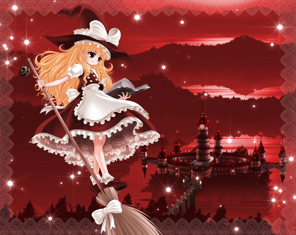 1girlbookbraidbroombroom surfingbrown eyesfemale focushatlong hairmini-hakkeronatureoutdoorsplantskirtskysolowitchwitch hat