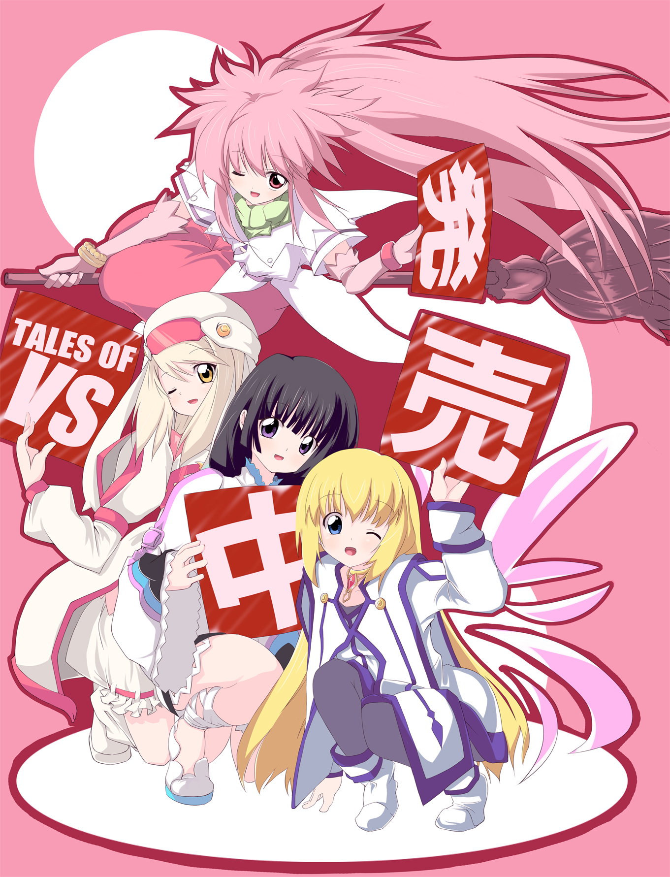 00s4girlsblack hairblonde hairblue eyesbraceletbroomcrossovergloveshatin-franchise crossoverjewelrylong hairmultiple girlsone eye closedpantyhosependantpink backgroundpink eyesponytailpurple eyesscarfshort hairwide ponytailwingswinkyellow eyes