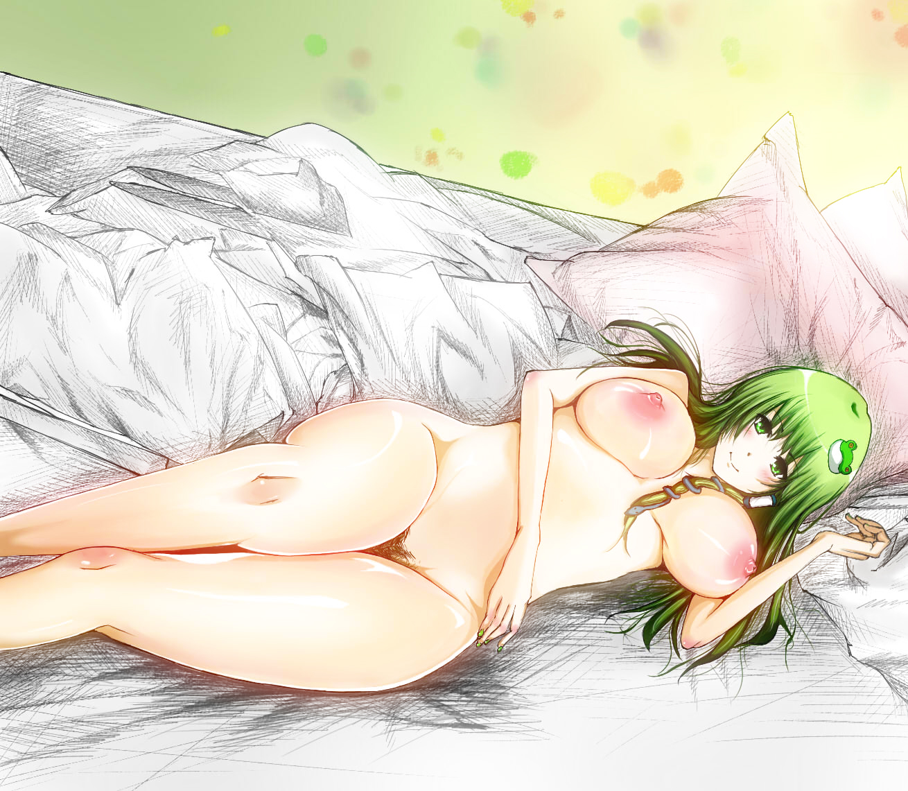 areolaebedbreastsfemaleFlag for Deletiong-metalgreen eyesgreen hairhair ornamenthair tubeshuge breastslegslong hairlyingnail polishnipplesnudeon sidepubic hairpuffy nipplespussysolouncensored