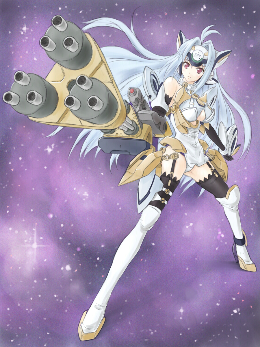 00s1girlandroidarmorbare shouldersblack glovesblue hairbreastselbow glovesfemale focusgarter strapsgatling gunglovesgunhuge weaponlarge breastslong hairmachine gunpantiesred eyessolothighhighsunderboobunderwearvery long hairweaponwhite thighhighs
