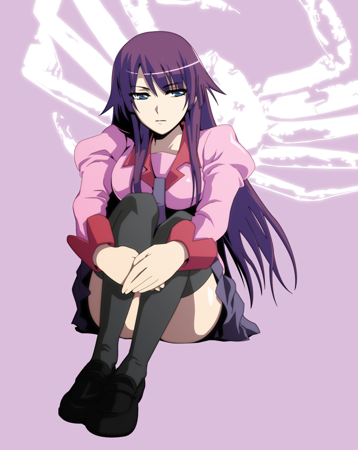 00s1girlfemale focusfull bodyhugging own legslegslong hairpurple hairschool uniformsittingsolothighhighs