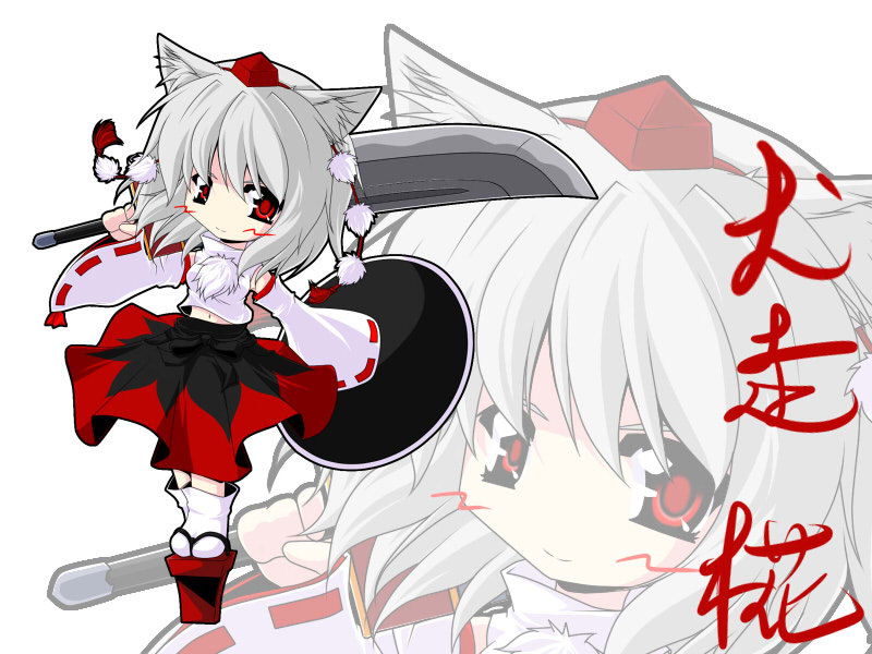 1girlanimal earscharacter namechibidetached sleevesfemale focusgetahatred eyesshieldshort hairsoloswordtengu-getatokin hatweaponwolf earszoom layer